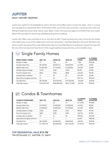 Locals love Jupiter for its breathtaking nature tiki bars and and and endless ways to enjoy the the water Hop in in fin in in a a a a a a a a a a a a a a a a a a a a canoe and and and and navigate the the the Loxahatchee River River At Riverbend Park Park you’ll find many amenities including horse trails and and and and hiking through Seminole Indian historic sites Right fin in in in in in in in in town the the turquoise lagoons of DuBois Park Park Park and and and and Jupiter Beach Park are ideal for swimming paddleboarding and snorkeling Jupiter Jupiter also offers many activities to to do on on on dry land as as well! Towering above the the the the coast the the the the brick-red Jupiter Jupiter Inlet Lighthouse is one of of of the the the the the oldest and and most iconic structures in in The Palm Beaches Climb all 105 feet to to to to the the the the the top for for a a a a a a a a a a a a a a a a a a a a a gull’s-eye view view of of the the the the coast Afterwards wear your best flip-flops to to to Guanabana’s Square Grouper Tiki Bar and and other low-key local favorites for for fresh-caught seafood tropical drinks and and incredible views Single Family Homes