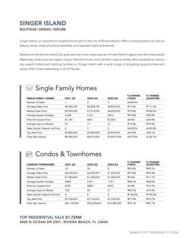 Singer Island an an an an an oceanfront neighborhood part of of of of of the city of of of of of Riviera Beach offers a a a a a a a a a a a a a a a relaxing blend of of of of of natural beauty seven miles of of of pristine beaches and and and upscale hotels and and and resorts Nestled on on the the the the the barrier island the the the the the park also sits in the the the the the urban estuary of Lake Worth Lagoon and and and the the the the the Intracoastal Waterway where you can can kayak canoe hike short trails and and and and and and visit visit the the the the the a a a a a a a a a a a a a a a a a a a a a a a a a a a a a a a a nature center Also available to to visitors are superb hotels and and and and meeting facilities on Singer Island with a a a a a a a a a a a a a a a a a a a a a a a a wide range of of of shopping opportunities and and and and some of of the finest restaurants in fin in all of of Florida Single Family Homes